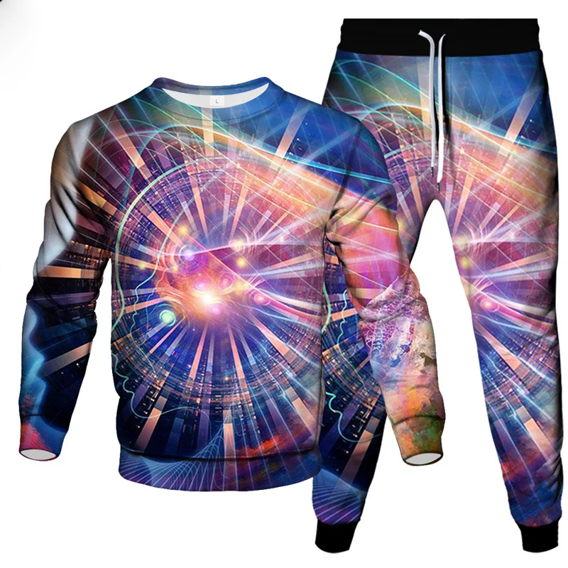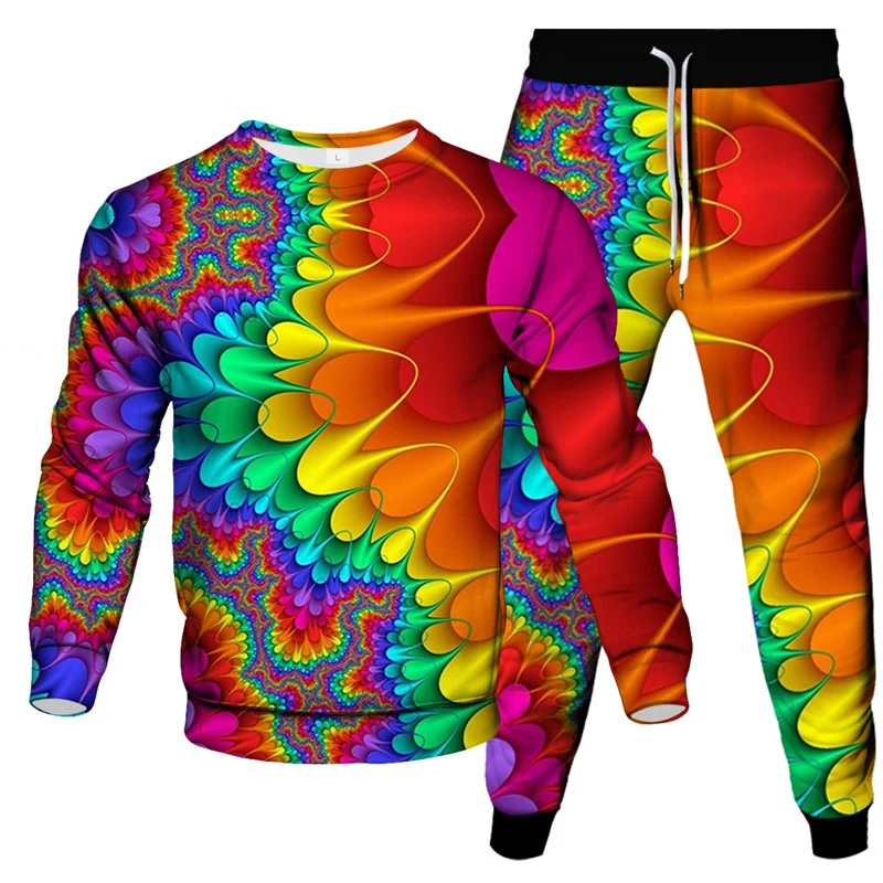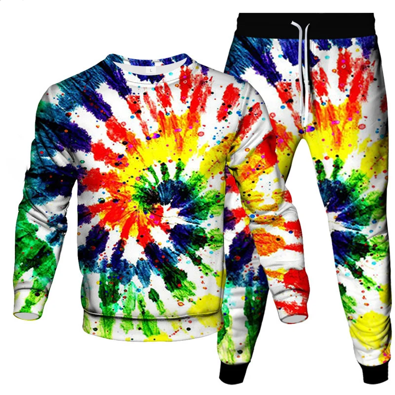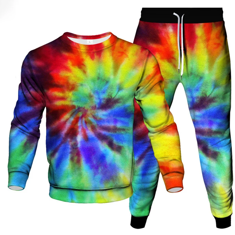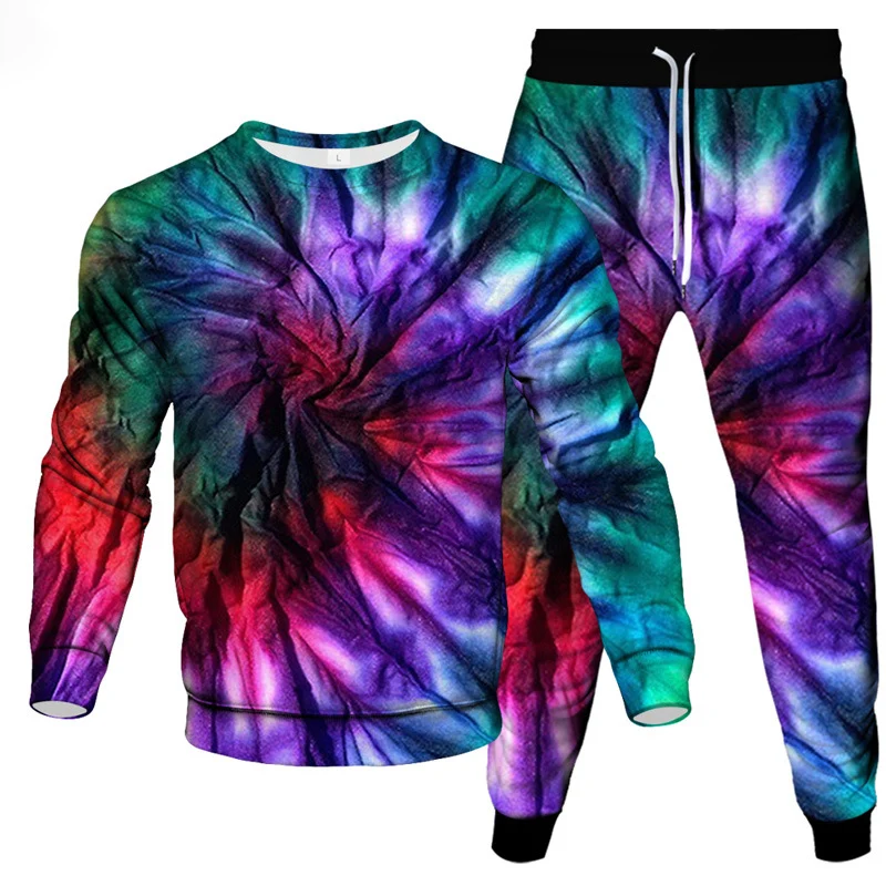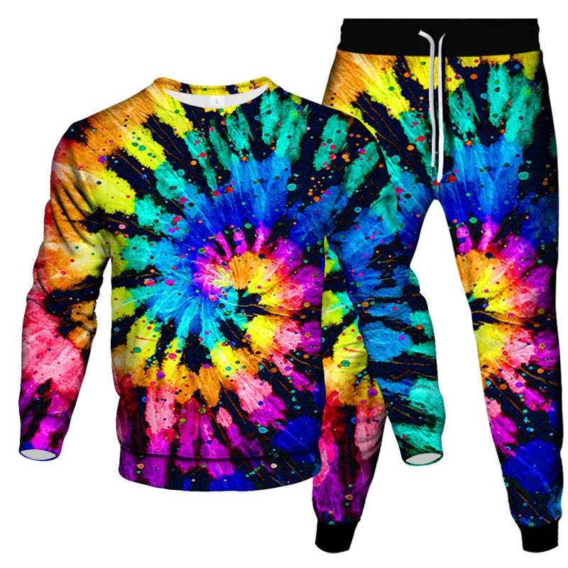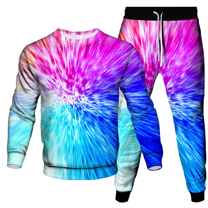 Make a bold statement with this eye-catching 2-piece tie dye sportswear set for men. Featuring a vivid 3D vortex print, this oversized long-sleeved pullover and matching pants deliver comfort, color, and confidence. Designed for streetwear lovers and those who value standout style, this set is ideal for casual outings, travel, lounging, or light workouts.